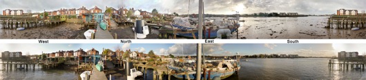 360° Panorama: These photos show the tide out and most of the way in. The central post bisecting the photos is the anemometer pole.